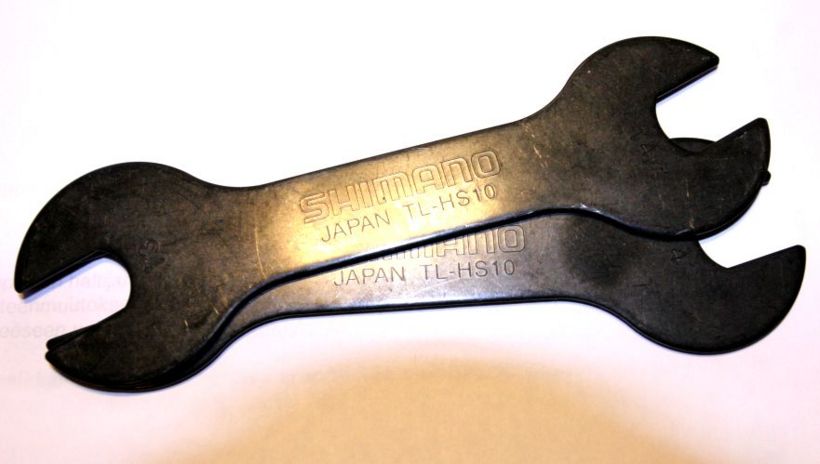 Shimanon kaksipäiset 13mm x 14mm kartioavaimet TL-HS10. Monet pyörätyökalujen valmistajat (mm. tacx, pedros, pro, park tool) tekevät myös yksipäisiä kartioavaimia, jotka ovat käteen mukavampia käyttää. Niitä tosin tarvitaan kaksinkertainen määrä.